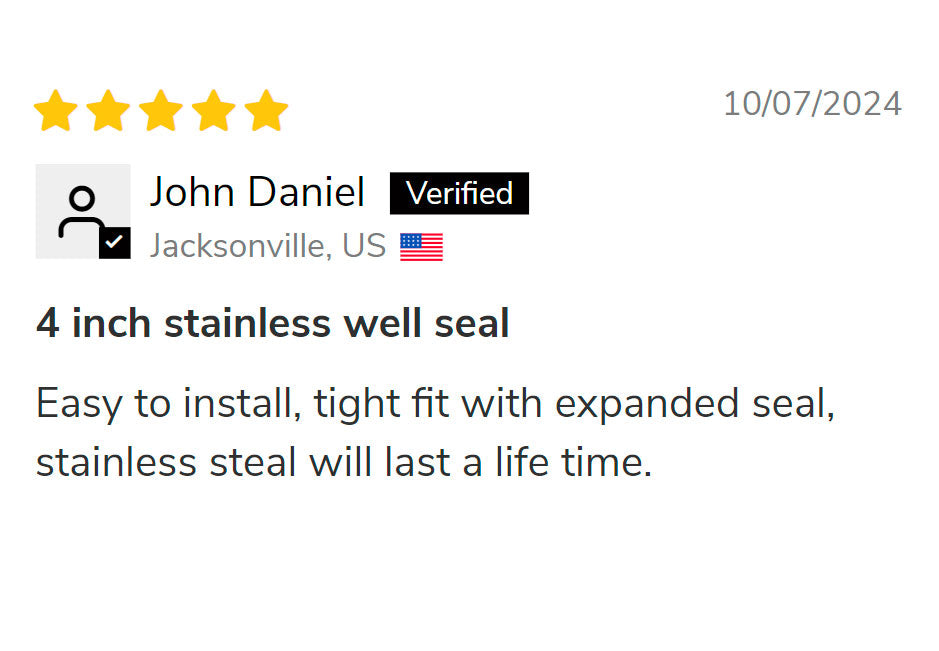 RPS engineers wanted to improve on the typical cast iron or plastic well seal, we listened to our customers' feedback and recognized the need for a well seal that lasts for the life of the well. So the stainless steel well seal was born! Unlike other well seals that rust within 10-20 years and can cause damage to your well system. You won't have to worry about the costly and dangerous process of removing part of your well casing just to replace a rusted-out seal. Made of high quality 304 stainless steel. Absolutely no UV degradation, compare to PVC. High weight load capacity - perfect for hanging submersible pumps in deep wells.