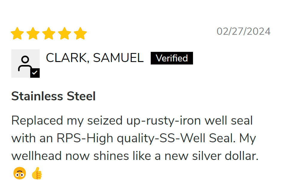 YOUR PUMP IS STAINLESS - THE WELL SEAL SHOULD BE TOO
